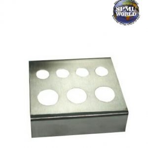 Large and small stainless steel ink pot stand for PMU tattoo procedures.